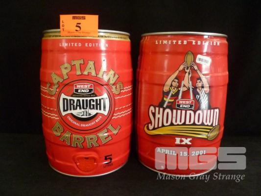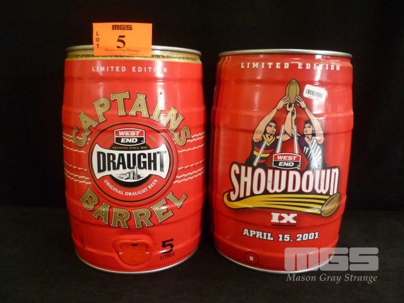 2 x WEST END CAPTAINS LIMITED EDITION 5 LITRE BEER BARRELS (EMPTY)