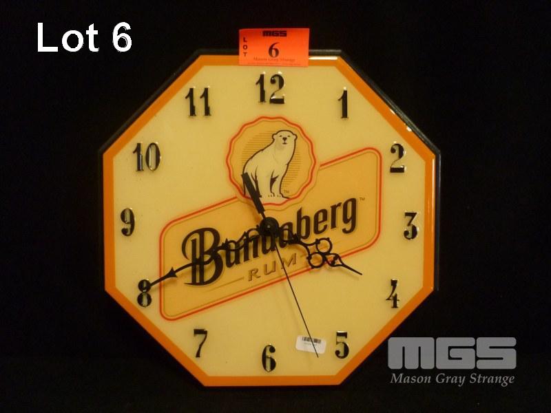 BUNDABERG WALL CLOCK, 30cm DIAMETER (WORKING)
