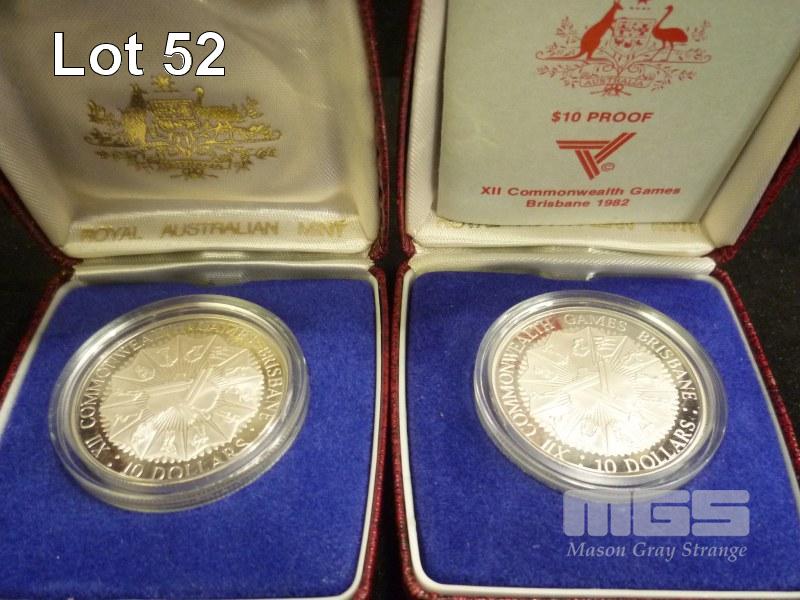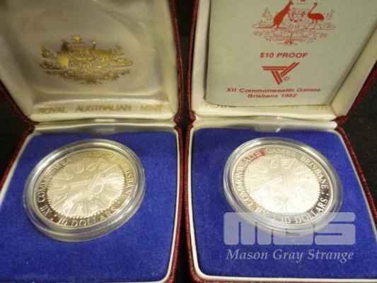 1982 2 x $10.00 PROOF FINE SILVER COINS IN CASES COMMONWEALTH GAMES