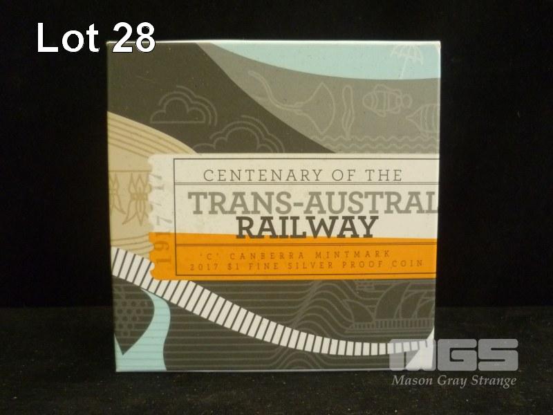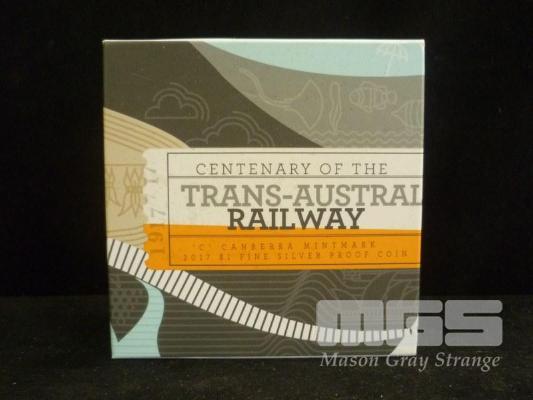 2017 PROOF 1 TROY OZ FINE SILVER COIN "TRANS AUST RAILWAYS" IN DISPLAY BOX