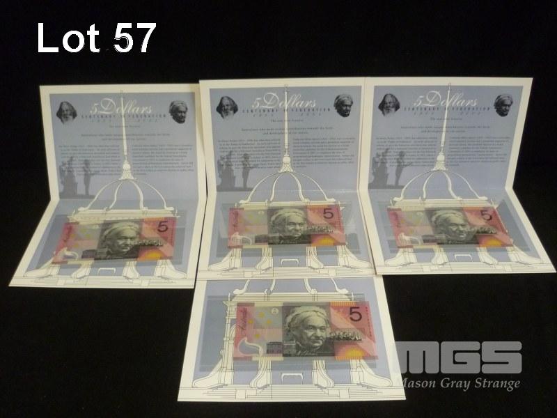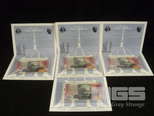 2001 4 x $5.00 NOTES 1ST PREFIX CENTENARY OF FEDERATION RARE LOW NUMBERED