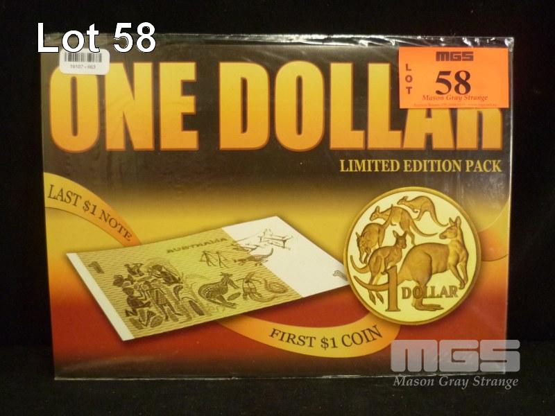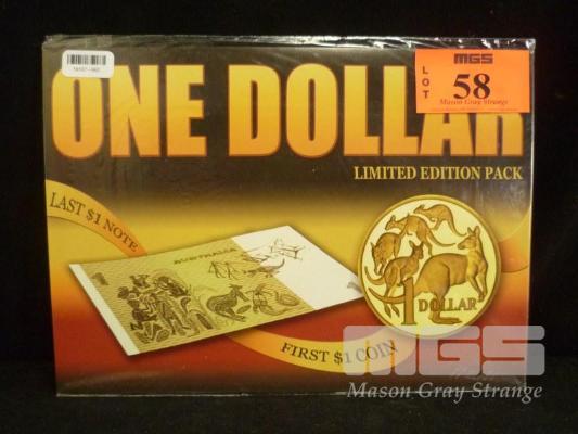 1984 LAST 1 DOLLAR NOTE AND 1ST 1 DOLLAR COIN IN FOLDER UNC