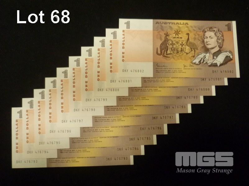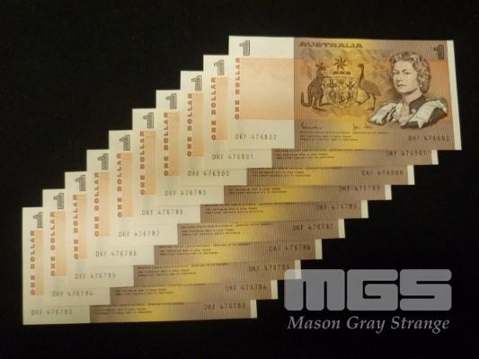 1982 10 x $1.00 NOTES CONSECUTIVE JOHNSTON STONE UNC