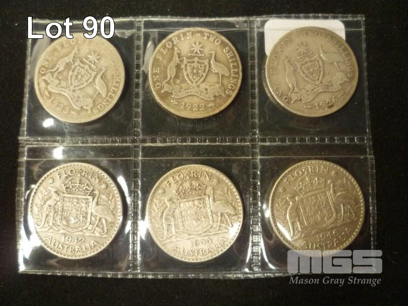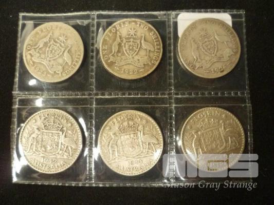 22,23,26,42,44,46 AUST FLORINS MIXED GRADES 6B COINS