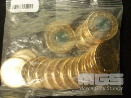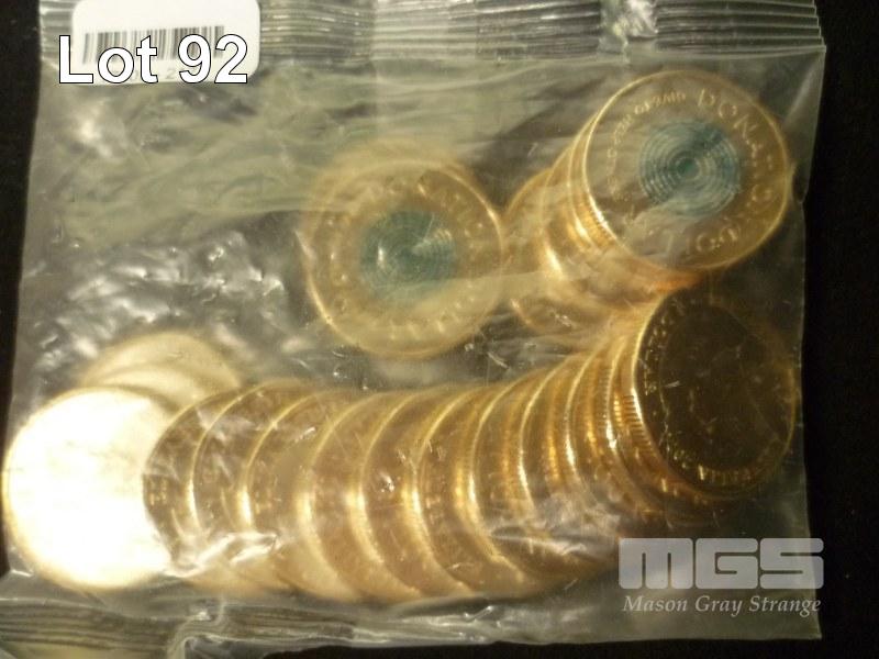 20 X AUSTRALIA, 2020, $1, COLOURED, DONATION COINS (SEALED IN BAG-UNC)