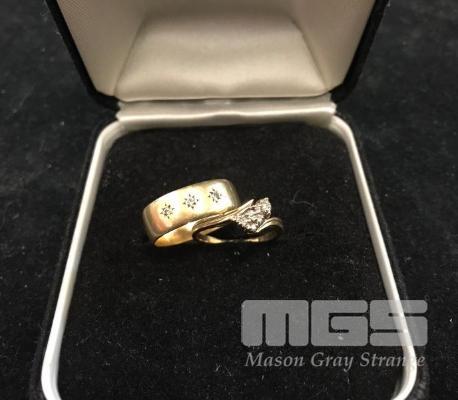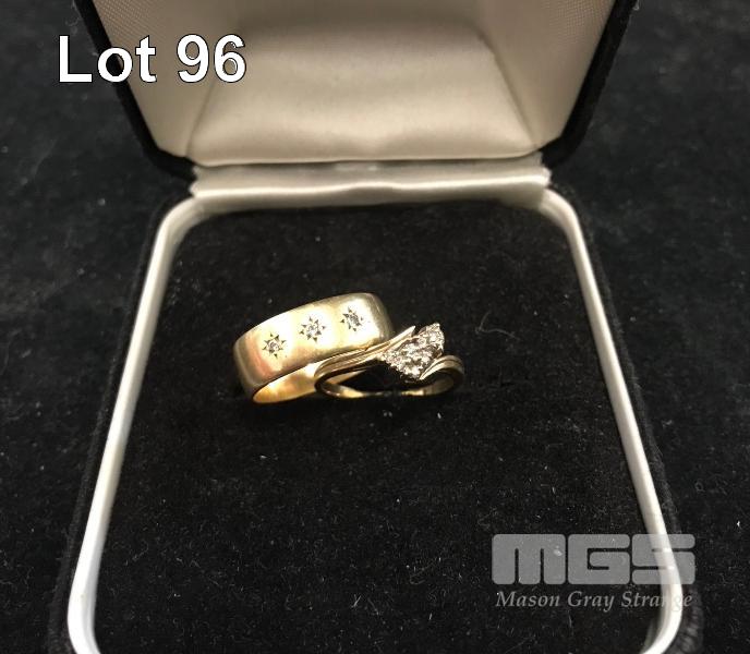 2 X GOLD RINGS WITH DIAMOND CHIP SETTINGS, MARKED 9CT, 7.2 GMS