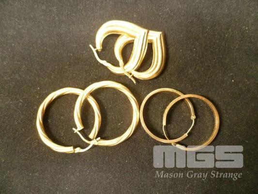 3 x PAIRS GOLD EARRINGS, MARKED 375, 7.09gm
