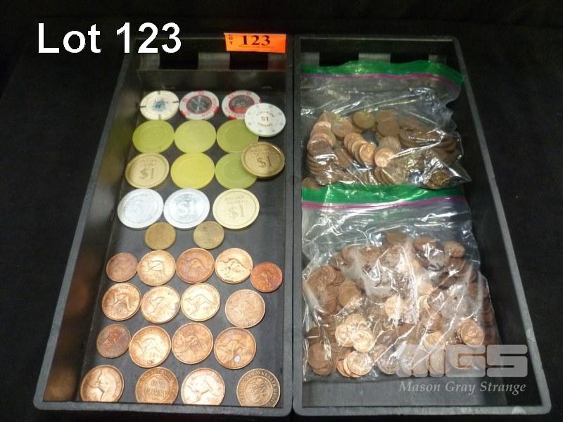AUSTRALIAN PENNYS, HALF PENNYS, .01c, .02c & CASINO CHIPS (MAINLY ADELAIDE CASINO)