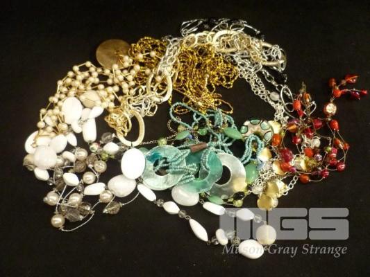 10 x ASSORTED CHAIN & GLASS BEADED NECKLACES WITH PENDANTS