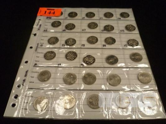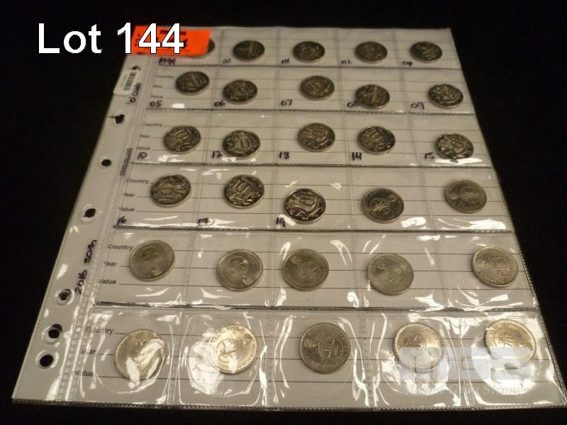SHEET OF AUSTRALIA 10c COINS, INC; 12 X 2016, 50th ANNIVERSARY OBVERSE, 18 X DIFFERENT YEARS '0' CUD