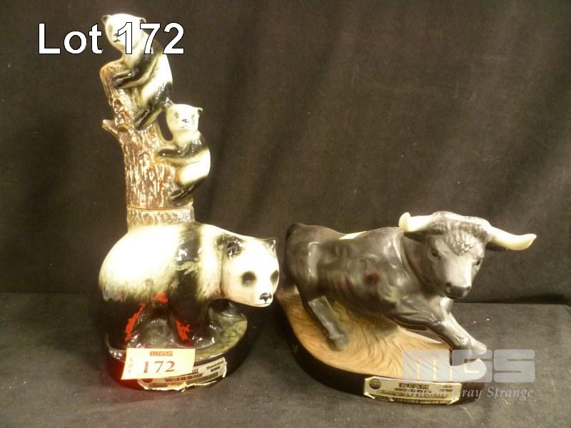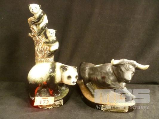 2 x JIM BEAM DECANTERS, (EMPTY), DEPICTING BULL & PANDAS