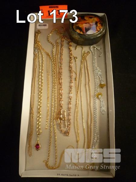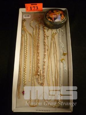 10 x ASSORTED GOLD PLATED & SILVER COLOURED NECKLACES, INC 1 x NECKLACE & EARRING SET IN SMALL RELIGIOUS BOX