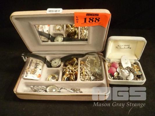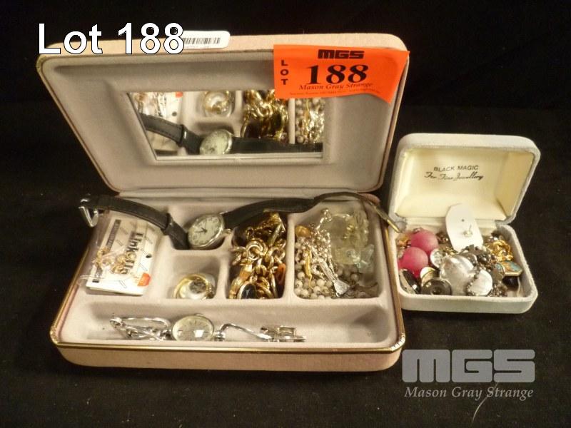 ASSORTED COSTUME & DRESS JEWELLERY, EARRINGS, BRACELETS, BROOCHES, PINS, ETC, 2 x VELVET JEWELLERY BOXES