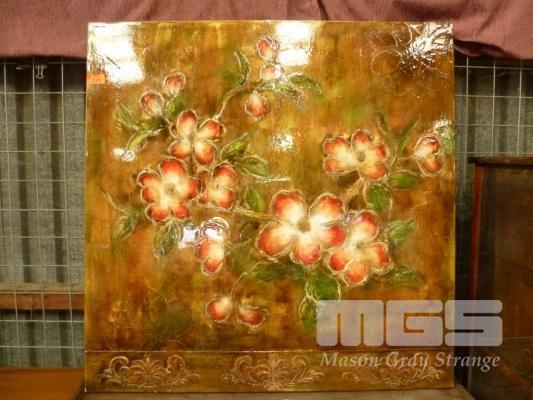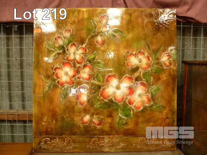 TEXTURED LAQUERED ENAMEL ON CANVAS, FLORAL WALL HANGING