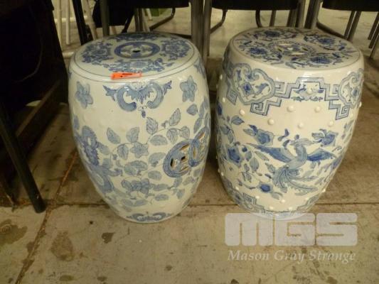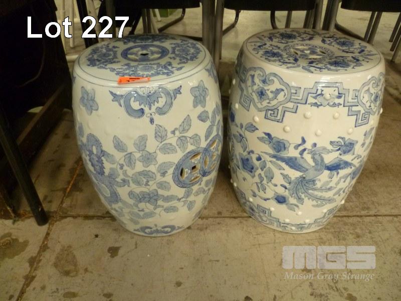 2 X BLUE & WHITE PATTERNED ORIENTAL PEDESTALS
