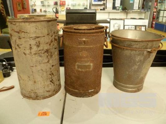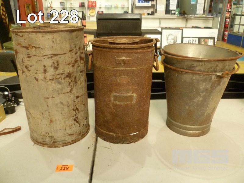 VINTAGE 3 GALLON MILK CAN, SHELL MOTOR SPIRIT CAN, 2 X STAINLESS STEEL MILKING BUCKETS
