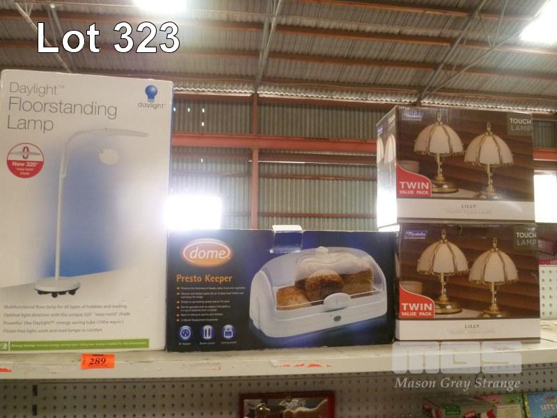 3 x TABLE LAMPS & BREAD BOX, NEW
