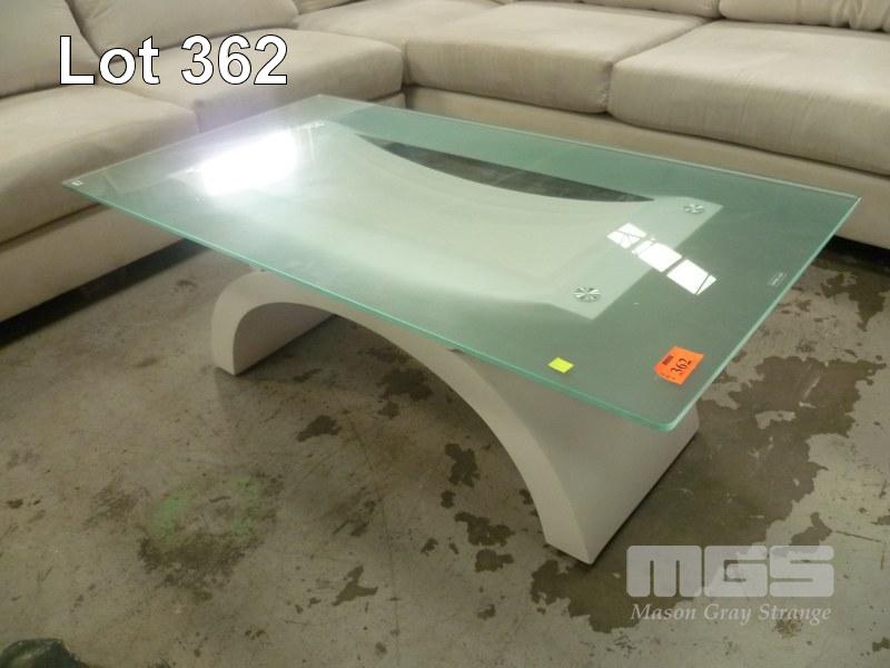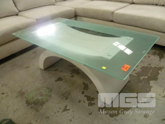 CONTEMPORARY RETAGULAR COFFEE TABLE, TEMPERED GLASS TOP, ARCH BASE