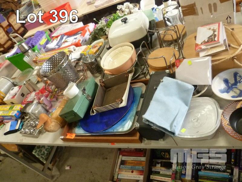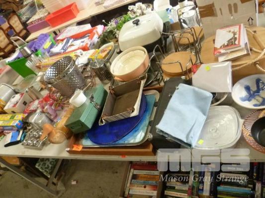 LIGHT GLOBES, KAMBROOK ELECTRIC FRY PAN, WIRE BASKETS, MAXWELL WILLIAMS TRAYS, ETC, 1 x TABLE