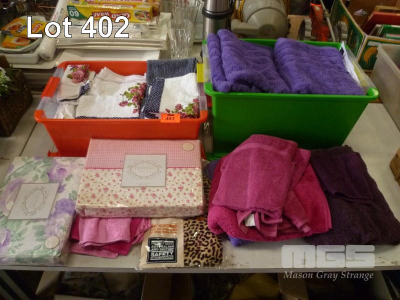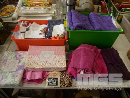 ASSORTED BATH TOWELS, TEA TOWELS & SHEET SETS