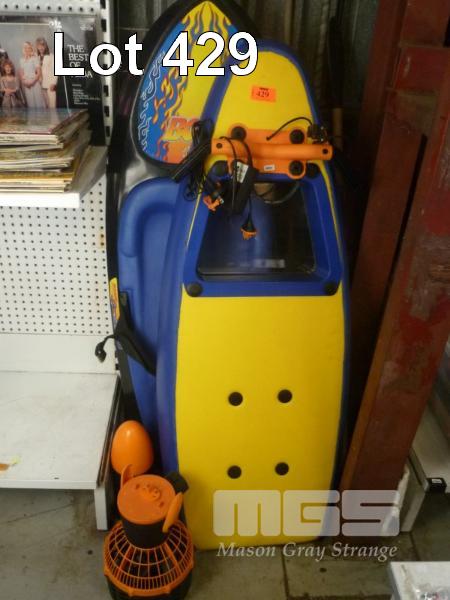 BOOST EXTREME KNEEBOARD, 141cm (L) & MOTORISED VEIWING WAVE BOARD (SWITCH & MOTOR WORK, BATTERY OR CHARGER NOT CHARGING)