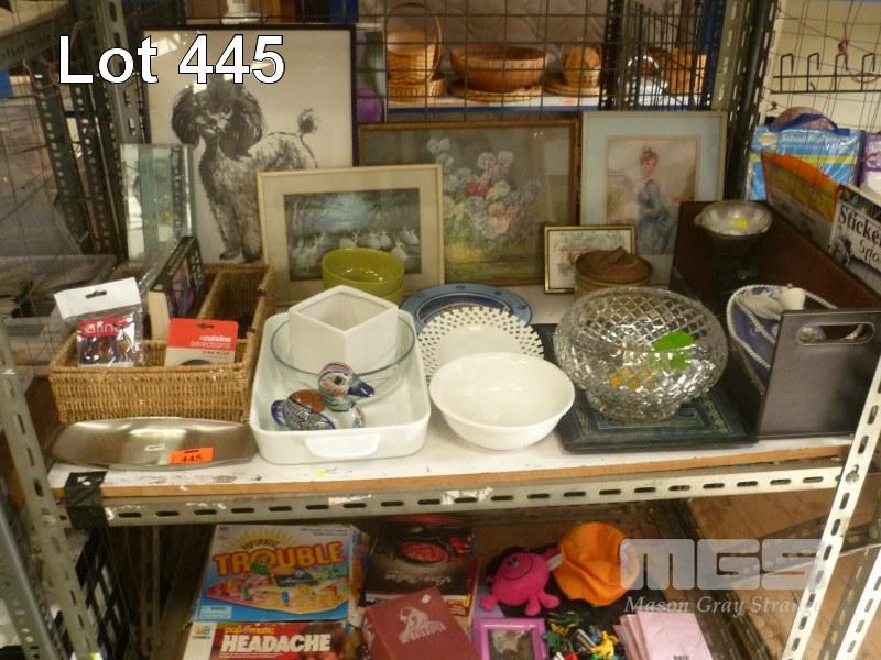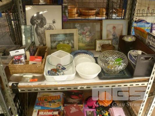 ASSORTED FRAMED PRINTS, BOWLS, BAKING DISHES, ETC