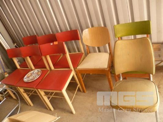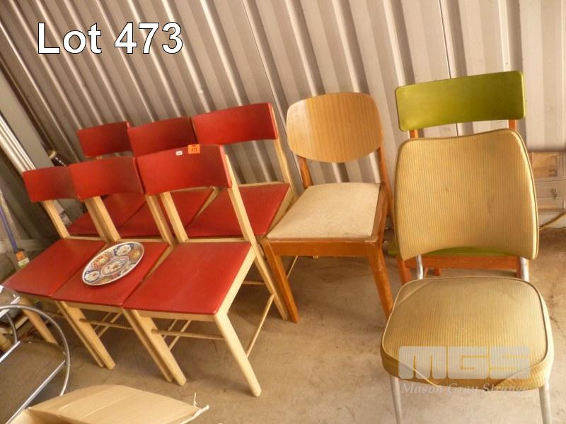 SET 6 RED VINYL UPHOLSTERED CHAIRS, & 3 x OTHERS