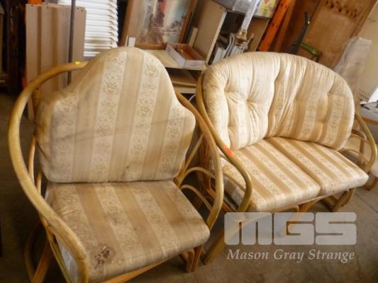CANE 2 PIECE LOUNGE SUITE, 2 SEATER & ARM CHAIRS & BENTWOOD ARM CHAIR