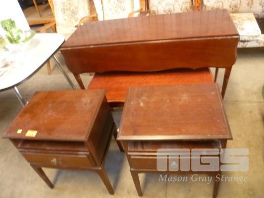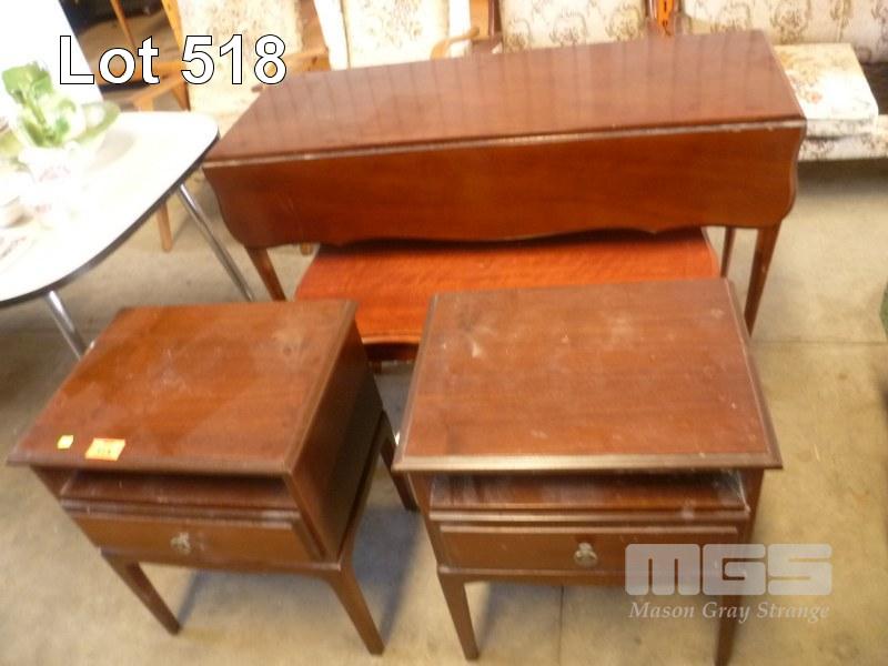 DROP SIDE DINING/OCCASIONAL TABLE, MAHOGANY COFFEE TABLE & PAIR PARKER FURNITURE SINGLE DRAWER BEDSIDE CABINETS