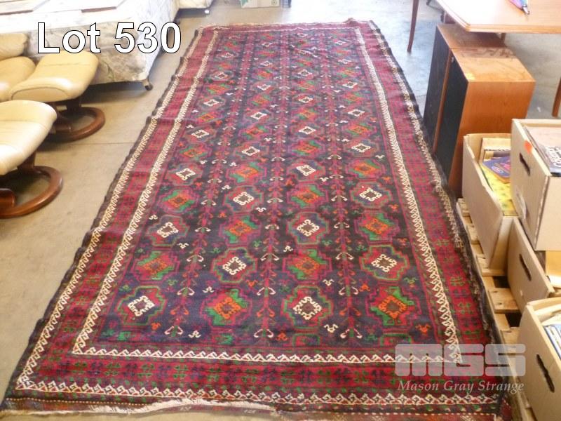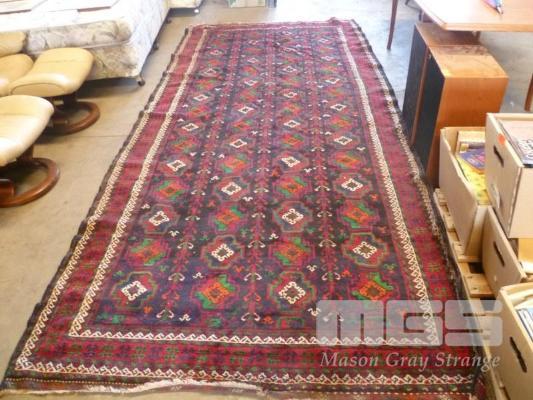 WOOLEN FLOOR RUG, BURGUNDY & BLUE, 393 x 178cm