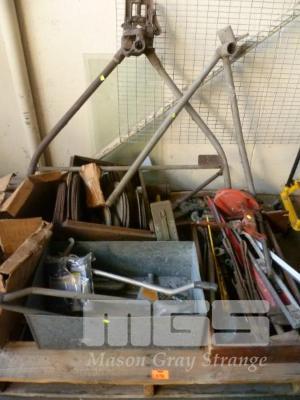 PIPE VICE ON STAND, CUTTING DISCS, PIPE BENDERS, ETC, 1 x PALLET