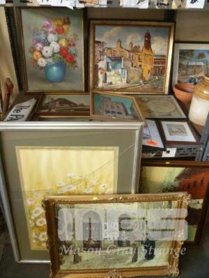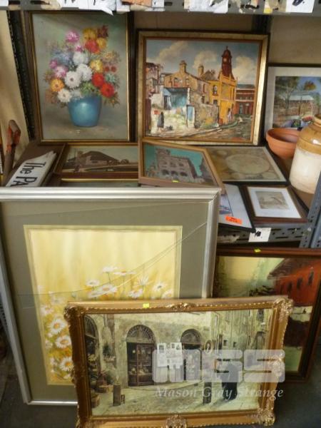 ASSORTED FRAMED PICTURES, PAINTINGS, THE PARADE STREET SIGN, ETC