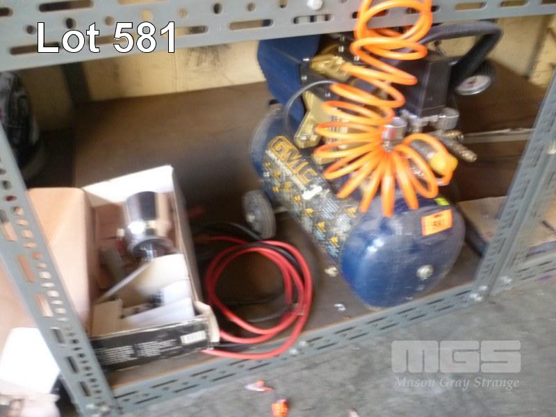 GMC WORKSHOP AIR COMPRESSOR, SPRAY POT & JUMPER LEADS