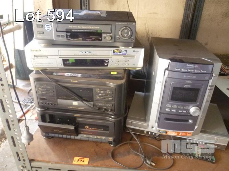 SHARP STEREO SYSTEM, PANASONIC HI-FI, CONY VHS, PANASONIC DVD PLAYERS, ETC