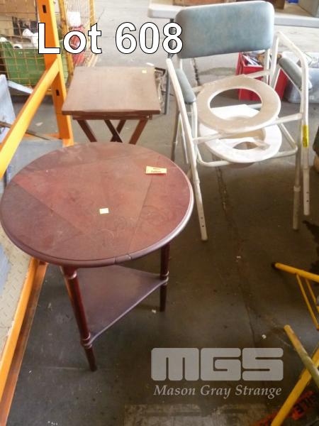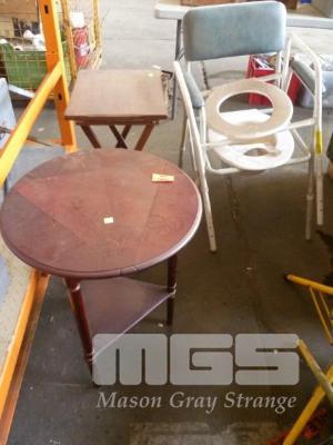 CIRCULAR OCCASIONAL TABLE, FOLD UP SIDE TABLE & 2 X TOILET SEAT RAISERS