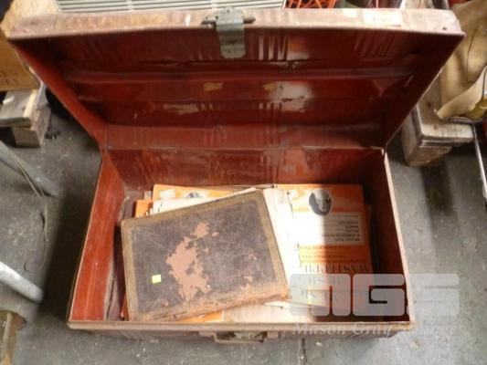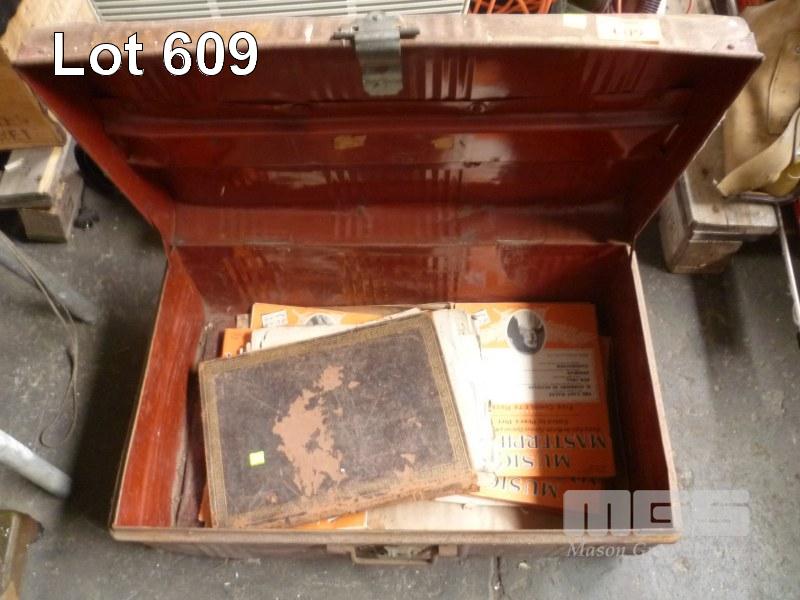 VINTAGE STEEL TRAVEL TRUNK & CONTENTS OF SHEET MUSIC BOOK