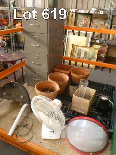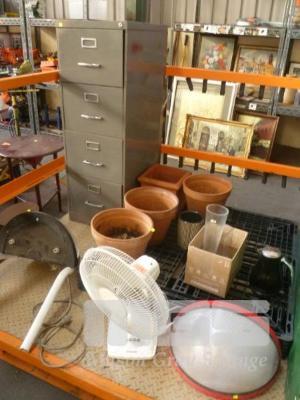 TERRACOTTA GARDEN POTS, METAL 4 DRAWER FILING CABINET, EXTERNAL LIGHTING & DESK FAN