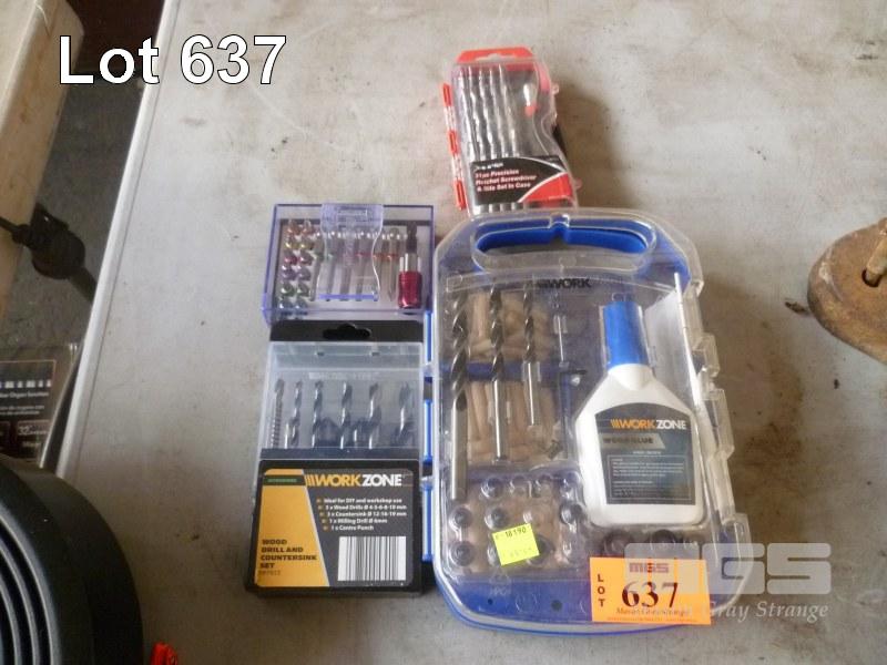 WORKZONE WOOD DRILLS, COUNTERSINK SET, WORKZONE WOODEN PLUG SET & DRILL BIT & 2 x SCREWDRIVER RATCHET SETS