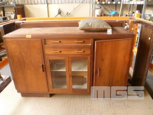 ART DECO TIMBER SIDEBOARD & TIMBER FRAME SINGLE BED, METAL BASE