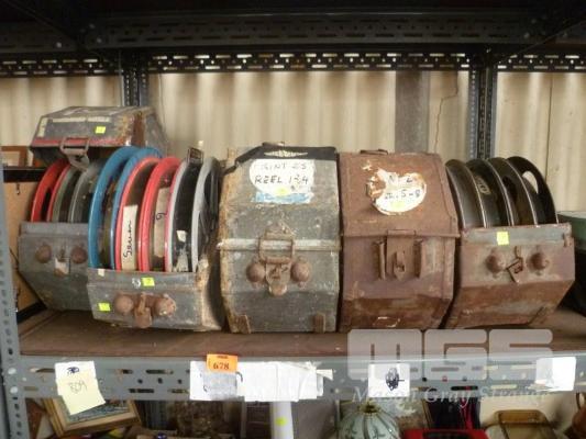 ALBY MANGELS WORLD SAFARI II & III FILM REELS, COMPRISING 34 x REELS IN 5 x METAL TRANSPORT CASES