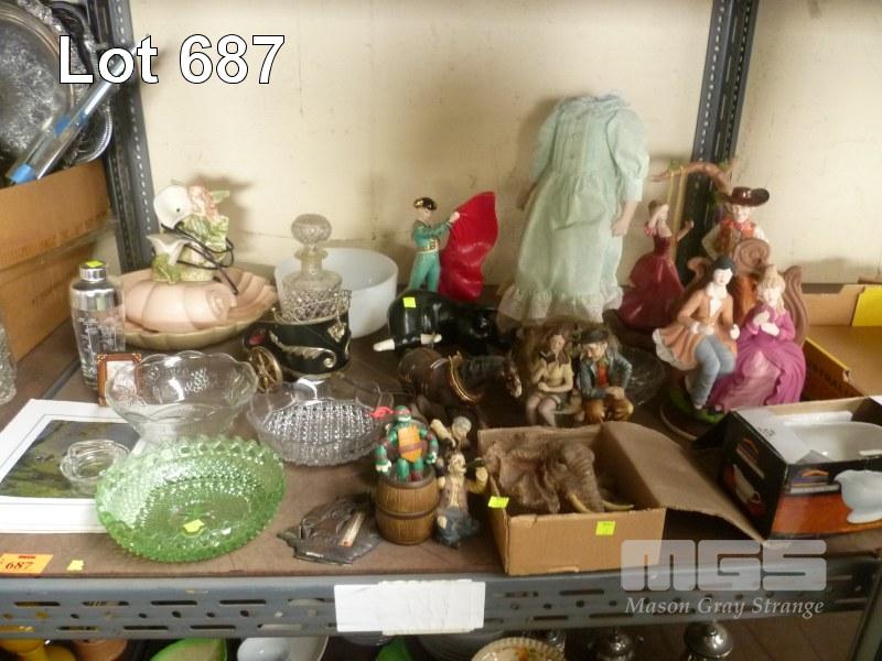 ASSORTED FIGURINES, DOLL, WATER FEATURE, ETC