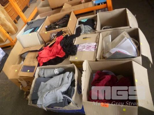 ASSORTED CLOTHING, TOWELS, SHEETS & ELECTRICAL EXTENSION CORDS, POWER BOARDS, ETC 10 x BOXES