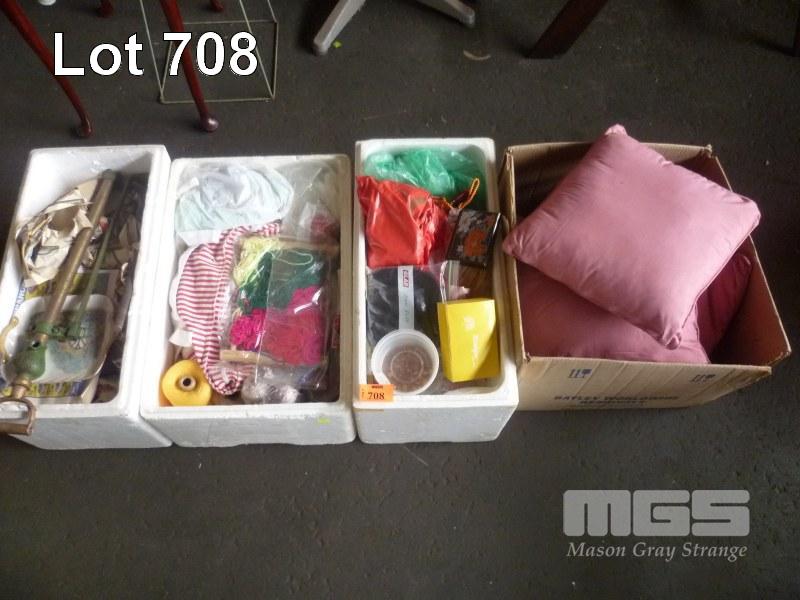PINK CUSHIONS, CRAFT SUPPLIES, GLASSWARE, ETC