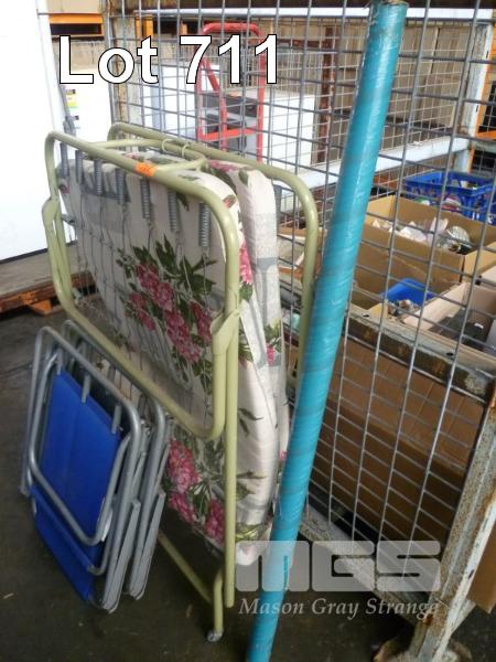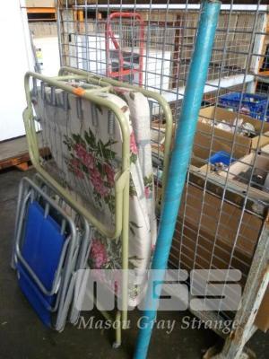 FOLD UP SINGLE BED WITH THIN MATTRESS & PAIR OUTDOOR CHAIRS
