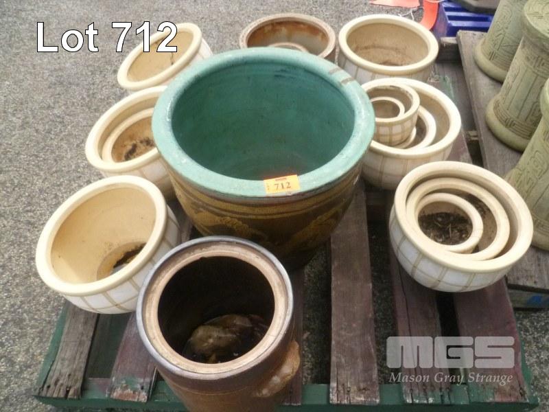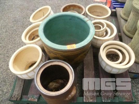 19 x ASSORTED GLAZED CERAMIC PLANT POTS & BENDIGO POTTERY BARREL (NOT LID)