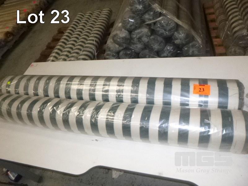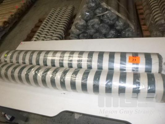 2 x ROLLS TEXTILENE FABRIC, GREEN/WHITE STRIPE, 1.5 x 25m APPROX