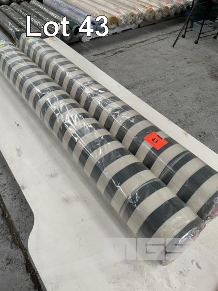 2 x ROLLS TEXTILENE FABRIC, GREEN/WHITE SLING STRIPE, 1.5 x 25m APPROX