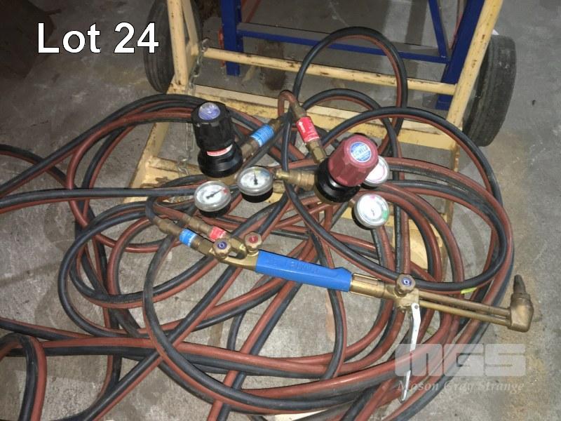 OXY HOSE, GUN, GAUGES & BOTTLE TROLLEY