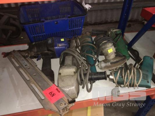 5 x ASSORTED POWER TOOLS & AIR NAIL GUN