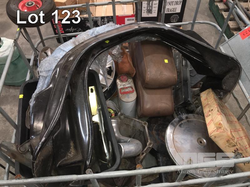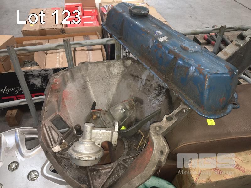 ASSORTED AUTO PARTS INC BONNET SPRINGS, BELL HOUSING, GLASS FUEL BOWL, WHEEL ARCH FLARES, ROCKER COVER, ETC, 1 x STILLAGE